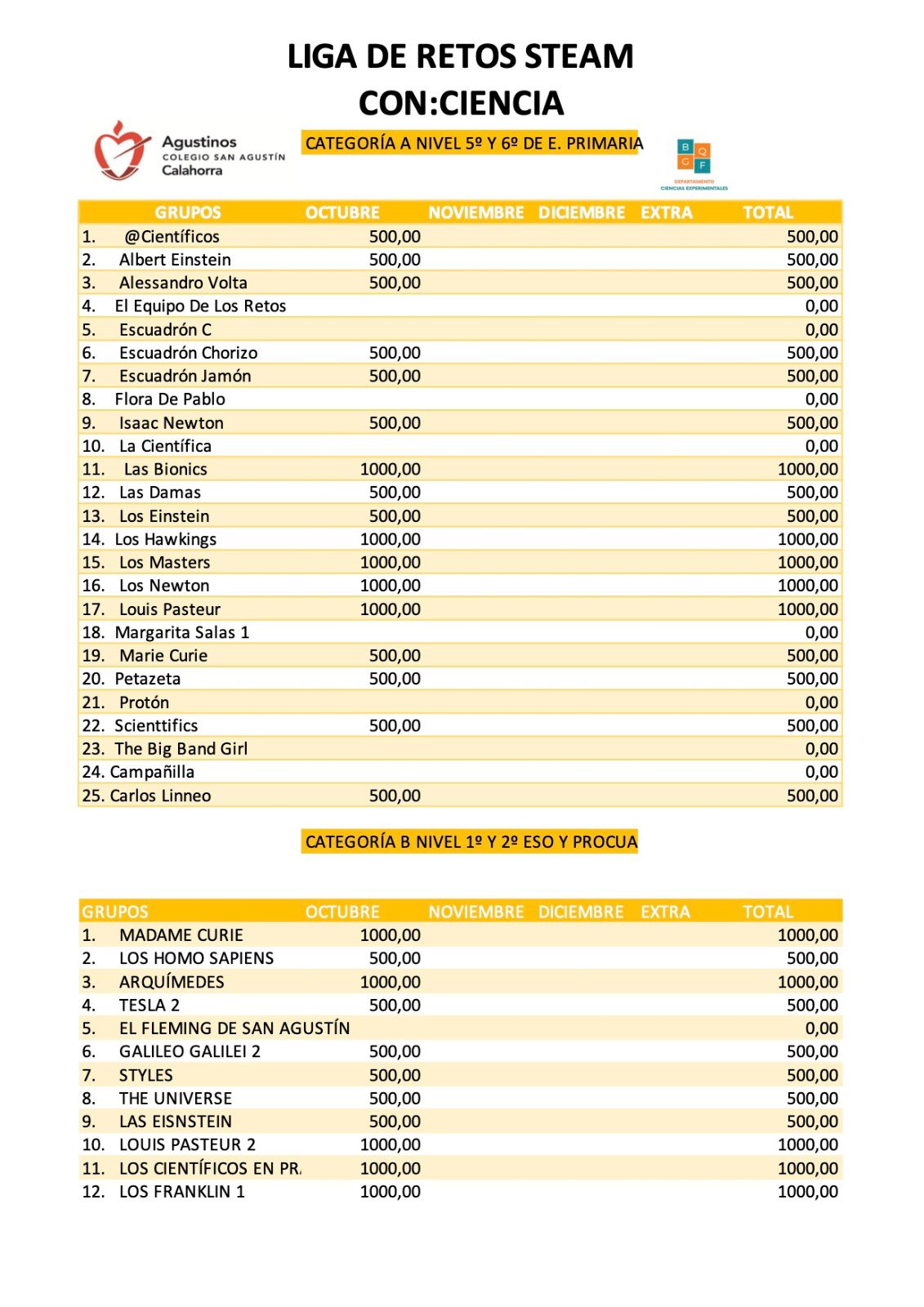 Clasificación de los Retos Con_Ciencia del mes de octubre. Enhorabuena a todos, seguid así que seguro que cada vez lo haréis mejor. ¡ÁNIMO, CAMPEONES! #agustinoscalahorra #calahorra #larioja #colegio #school #igerslarioja #escuelascatolicas #haciendoescuela #125aniversario #cehs #colegiobilingüe #bilingüismo #unsolocorazon #educacion #educacionemocional #nanotecnologia #retosconciencia