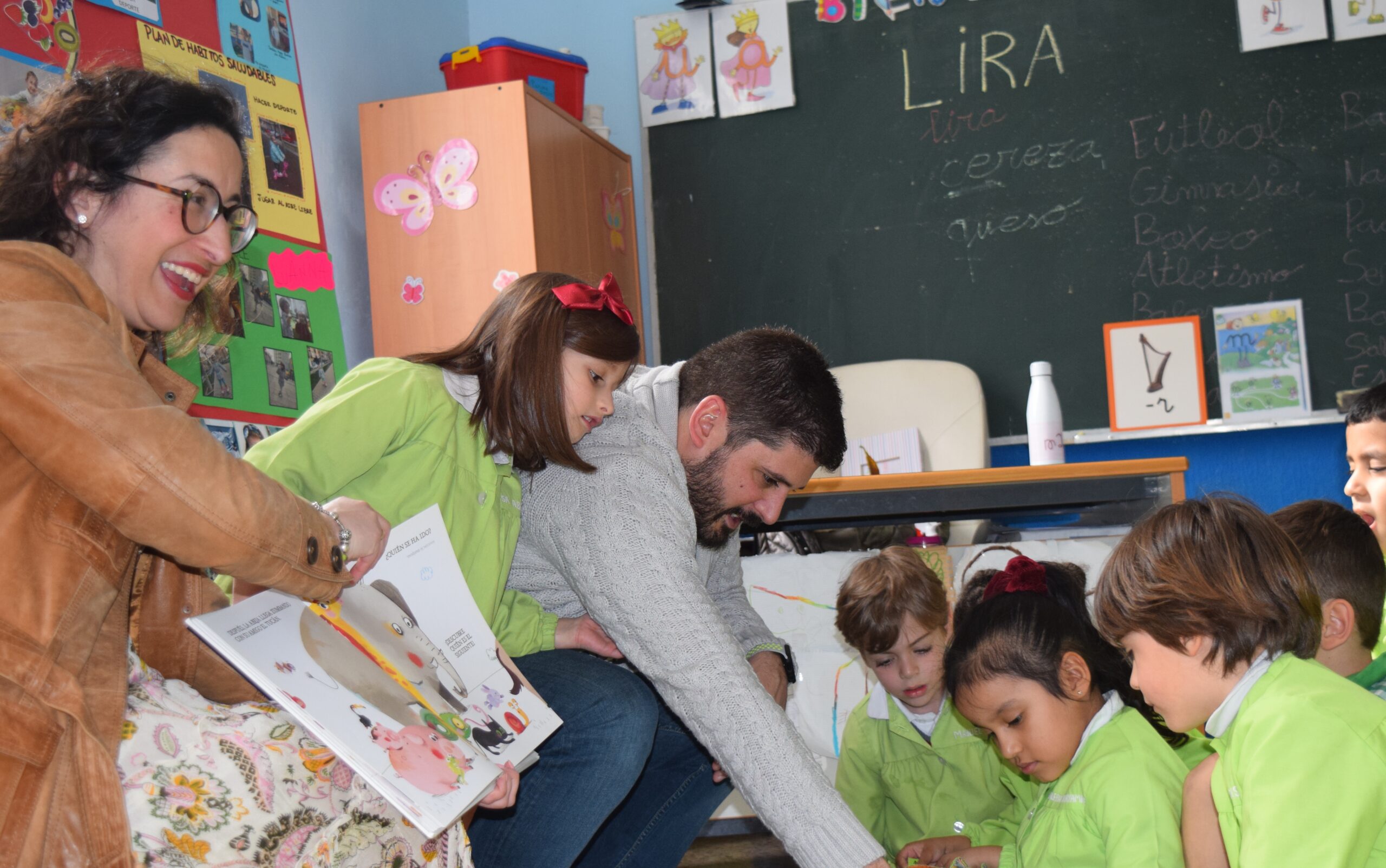 En 2º de Infantil B fuimos los anfitriones de un cuentacuentos especial para Elisa. La madre de Elisa les contó el cuento “Las jirafas no pueden bailar”, donde la protagonista Chufa se desplegaba de las páginas. Algunos animales se burlan de ella, pero finalmente con ayuda y esfuerzo todo sale genial. Gracias por la elección, les